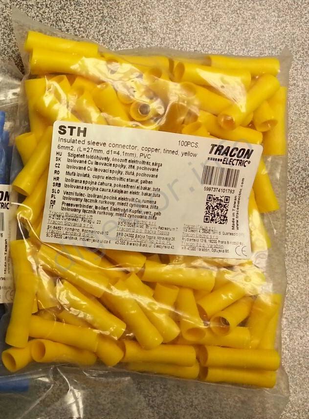 Dutinka SPOJKA STH Žltá 6mm2 Izolovaná, L=27/3.9mm, Cu+Sn/PVC, lisovacia
