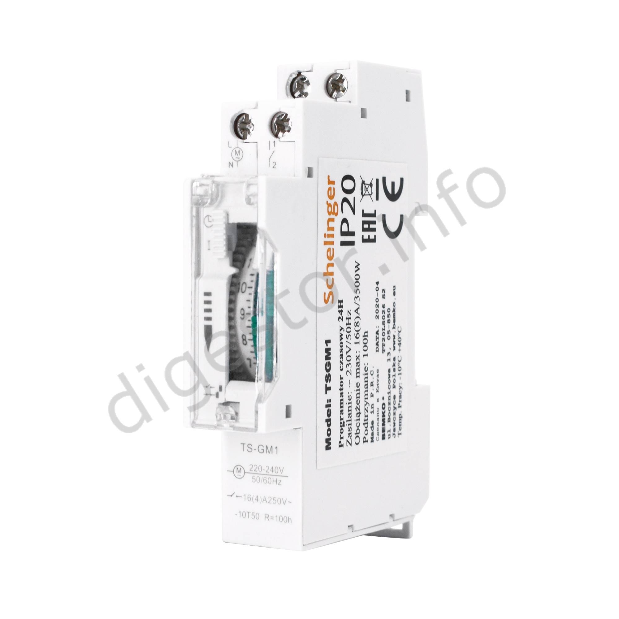 Hodiny spínacie A26-TSGM1 Mechanické Denné 1MOD na DIN lištu S REZERVOU Rezerva = Záložná Batéria na 100h - netreba znova nastavovať hodiny počas / po výpadku elektrickej energie. Dva režimy: - podľa Nastavenia hodín (symbol ciferníka), alebo Trvale zapnuté (symbol Rímska I.) Plombovací kryt. BEMKO a ich značka Schelinger Hmotnost: 0.125 kg Technical specification Installation Data Height 63mm Length 92mm Width 18mm Certificates and markings Protection degree IP20 Other Carton 100 Contacts 1xNO Installation DIN/TH/THS rail 35mm Max. current load 16A Max. load power 3500W Number of modules 1 Number of programs 96 zapadek Packaging 10 Palette 4000 Power supply ~230V/50Hz Precision 15min Type Mechaniczny dobowy Brand Schelinger Ceny pre investičné projekty sa stanovujú na základe množstva a môžu byť výrazne odlišné. Prices for the investment projects are determined on the base of the business case volume and might be significantly different. Obrázok môže byť len ilustračný. The picture might be illustrative only. Inštaláciu a zapojenie môže vykonávať len kvalifikovaný elektrotechnik. Installation and connection can be performed only by a qualified electrician. ***Are you a Company, Institution or Trader? Let us to set up Your prices!*** Tel.: +421-903/430803, elmat@elmat.sk ***Ste Firma, Inštitúcia, alebo Obchodník? Dajte si nastaviť Vaše ceny!*** Tel.: +421-903/430803, elmat@elmat.sk