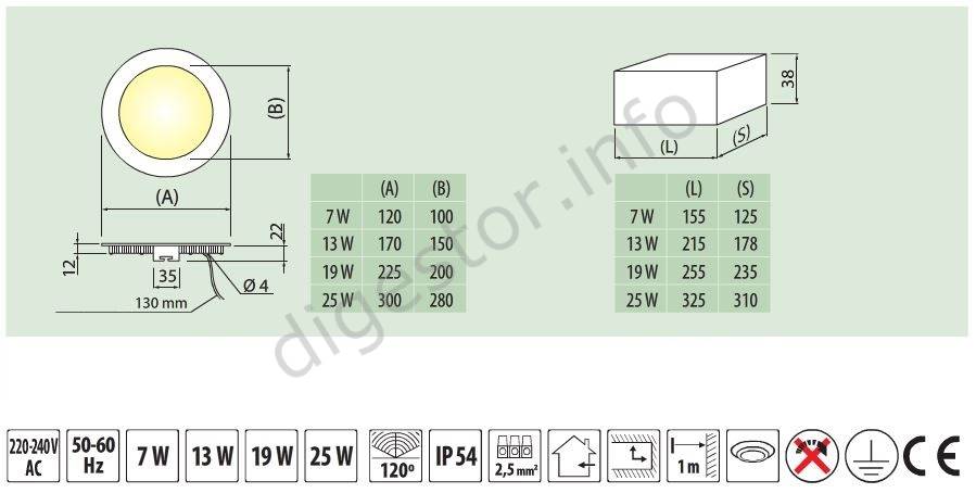 Dostupné príkony: 7W, 13W, 19W, 24W