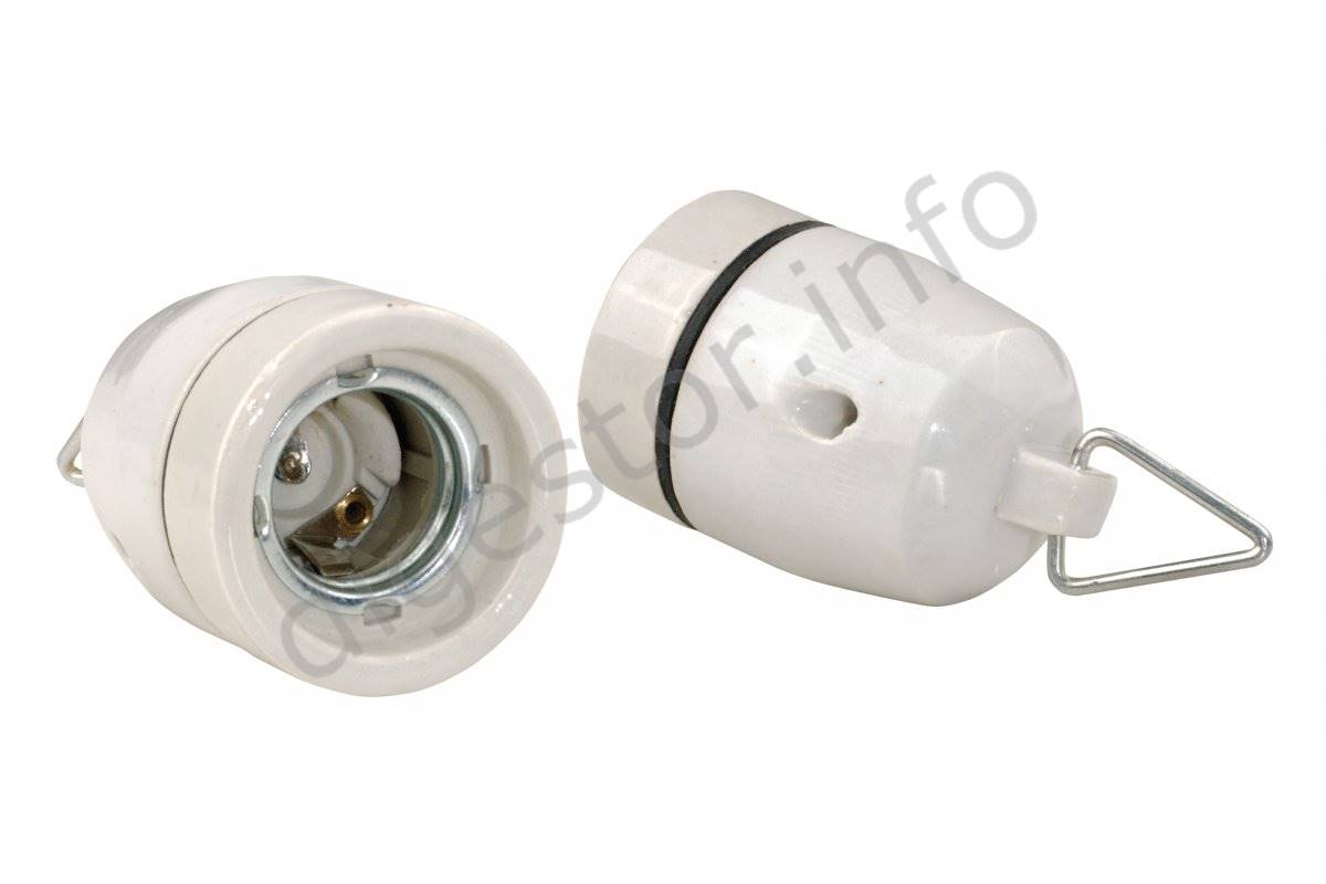 Objímka E27 Závesná Keramická s Uškom biela max 100W IP20, AE-OCEF27-00