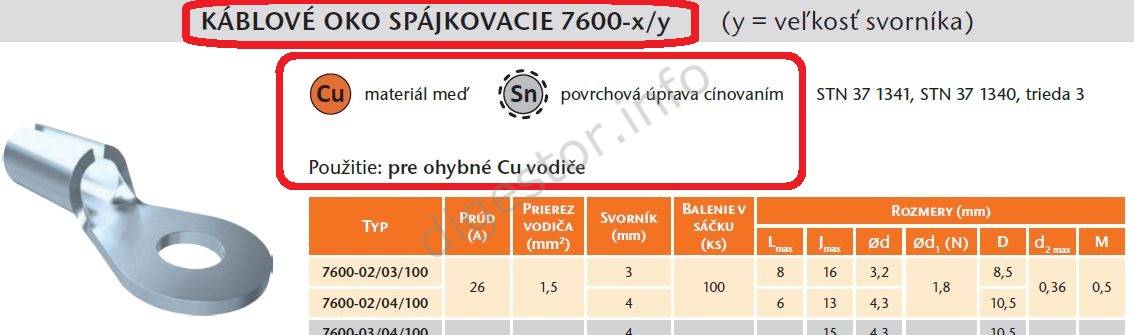 Oko 7600-07/08, 16mm2/M8 LETOVACIE Cu/Sn 117A 10000685.00