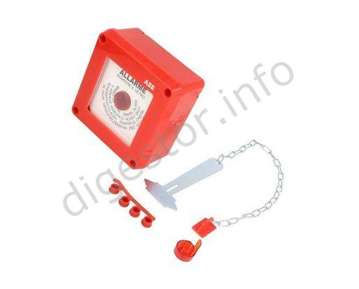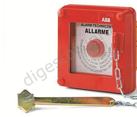 Požiarne tlačidlo ABB 13180, ALARM skrinka sklo kladivko IP55 100x100x50mm 01338,