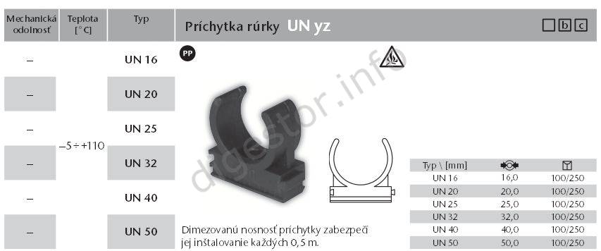 Príchytka UN pre ohybné aj tuhé elektroinštalačné rúrky.