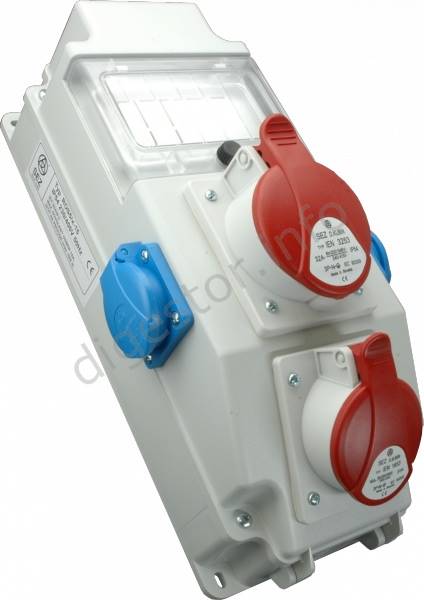 400 V/32 A, 5P (3P+N+PE); 400 V/16 A, 5P (3P+N+PE); 250 V/16 A, 3P (2P+PE)