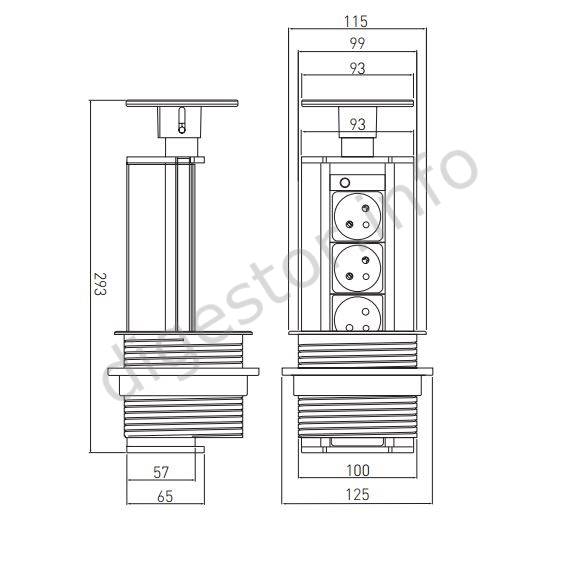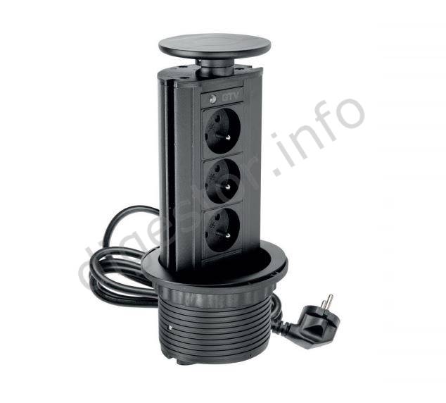 Rozvodka kancelárska - Stĺpik 3x230V, Čierna, Vstavná / Výsuvná,