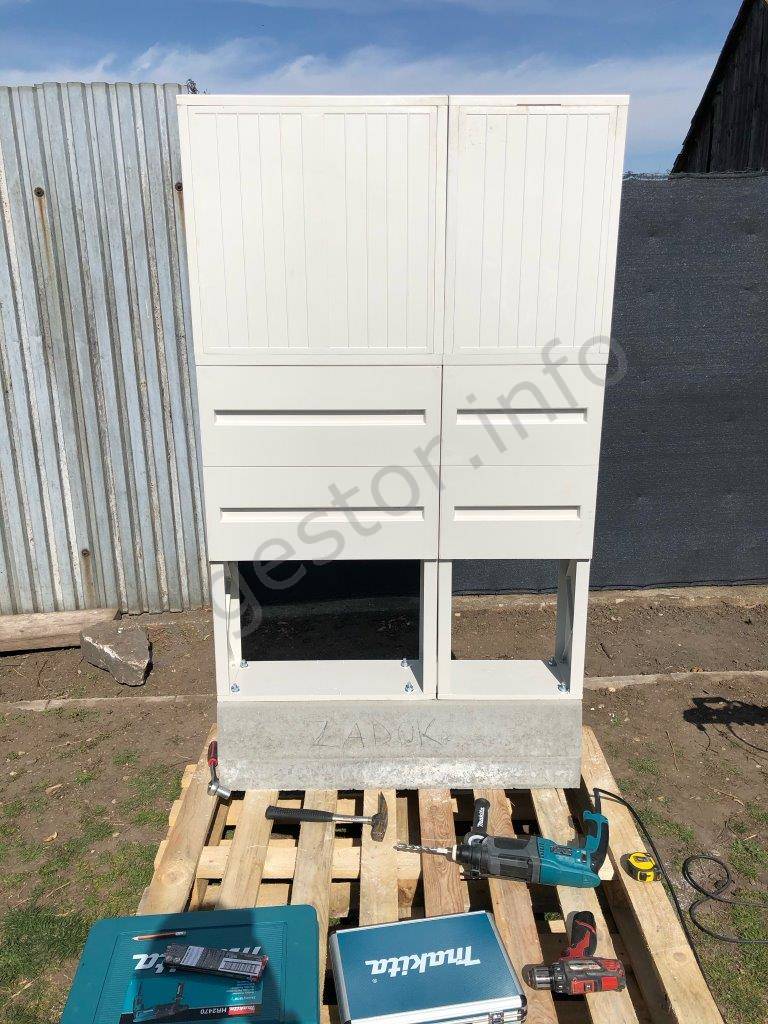 Skrinka neobsahuje plynomer, plynový ventil, ani regulátor, ani otvory, ani konzoly pre potrubie..
